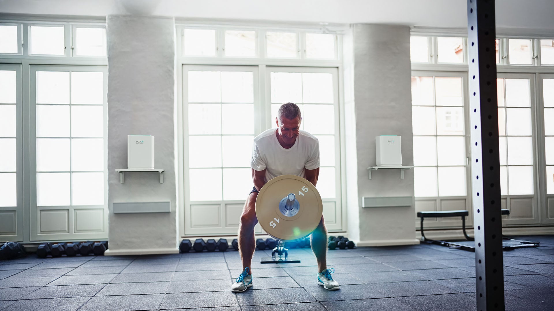 Keep your gym safe with EcoAir AVS, instantly eliminating 99.925% of airborne pathogens in just 0.01 seconds.